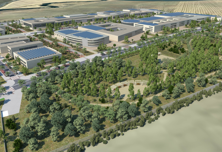 Así será Soland cuando todas las empresas se hayan instalado. Un espacio para la greennovation junto a uno de los espacios de más valor ambiental y ecológico de Sevilla.